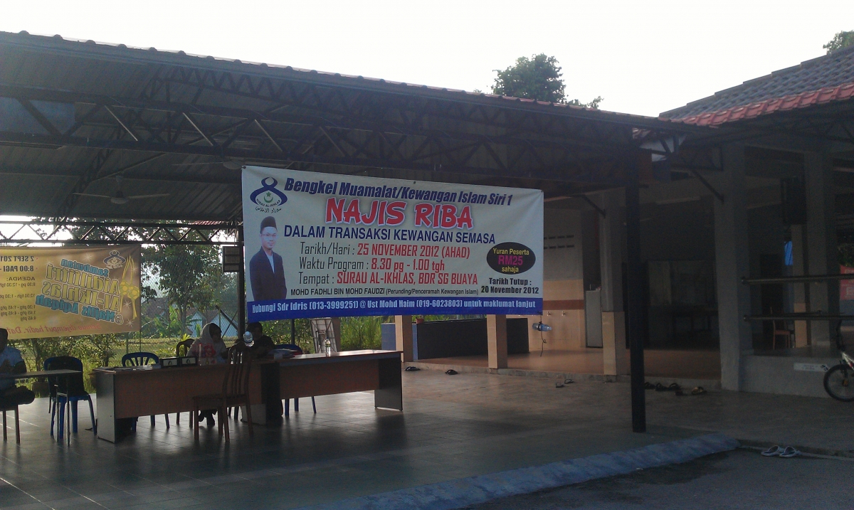 Bengkel Najis Riba Dalam Transaksi Kewangan Semasa Tarikh : 25 Nov 2012 Tempat : Surau al-Ikhlas, Sg Buaya, Rawang Peserta : Ahli Jemaah Surau