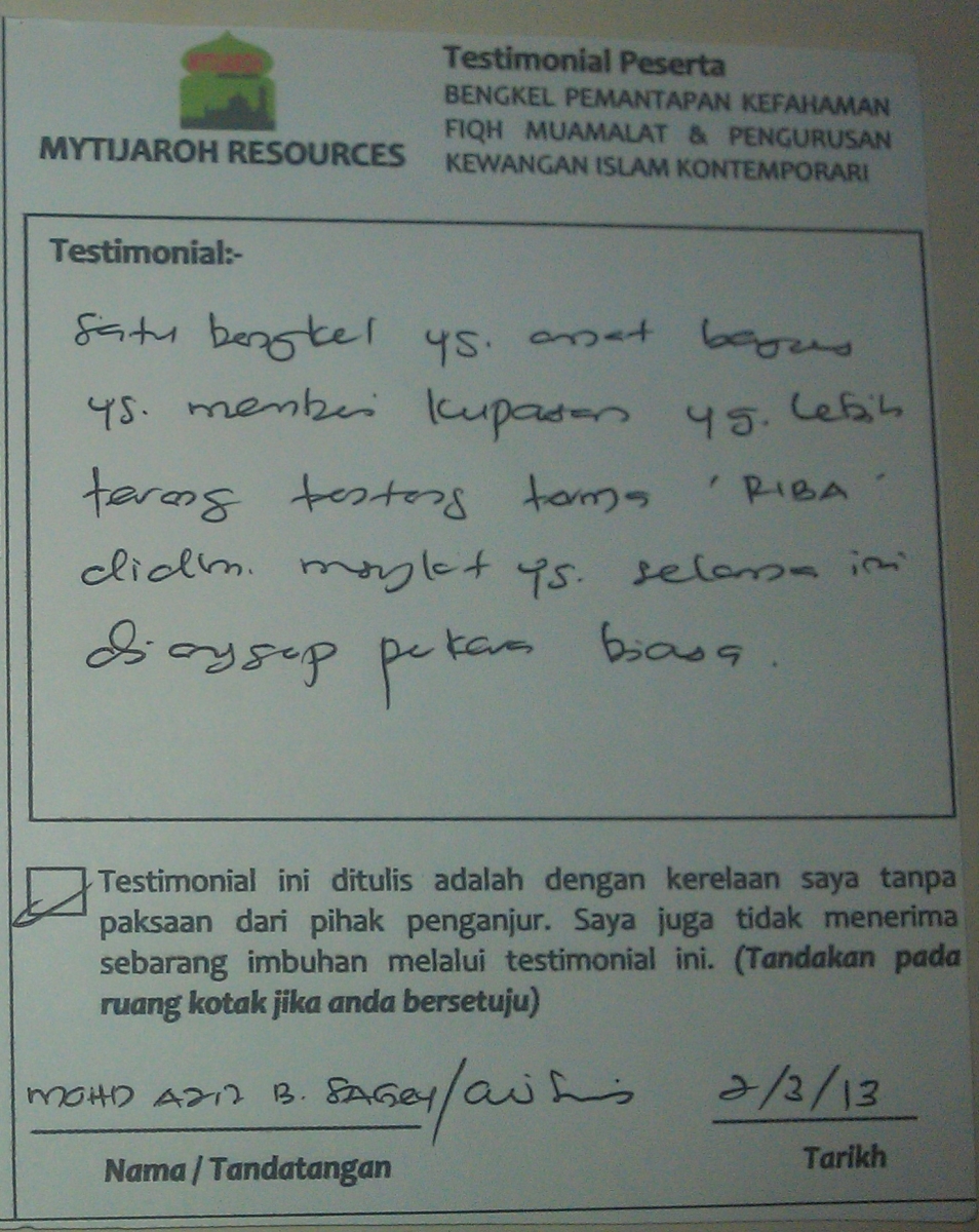 Bengkel Najis Riba Dalam Transaksi Kewangan Semasa